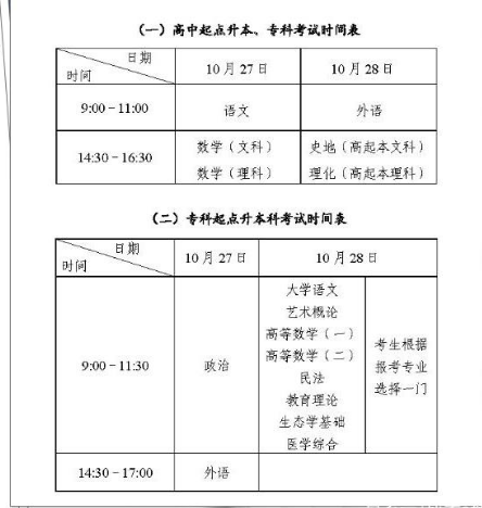 成人高考入学考试时间:10月27~28日。(周六,周日)